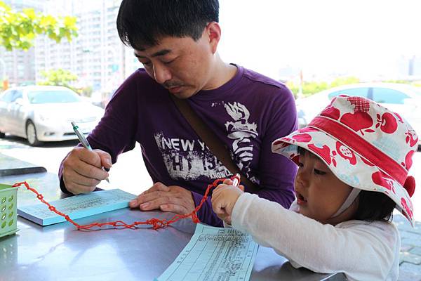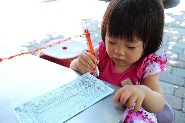 爸比在勾選餐單時,霓霓也跟著湊熱鬧一直吵著要拿筆