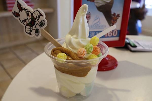 霜淇淋的造型很繽紛!但冰淇淋加上黏黏的花生醬的口感沒很愛耶!我還是喜歡吃蜷尾家霜淇淋啦~