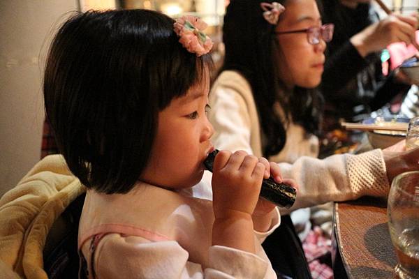 現場還有桌邊服務-現包壽司捲,餐單都是生食的部分,沒想到詢問是否可以單包海苔及飯的壽司卷也可以,於是小孩們光吃這單純的壽司卷就吃得很開心呢!