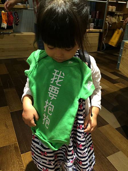 在誠品松菸館看到這件衣服的字樣就覺得好貼合今日的心境喔!沿途走路過程中不時喊要抱抱,馬麻的手都要痠了.....