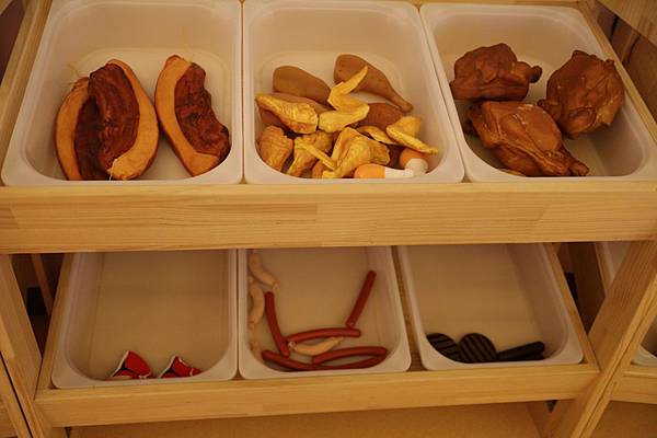 哇~許多仿真的食物耶!而且不是塑膠做的,摸起來軟軟的呢~
