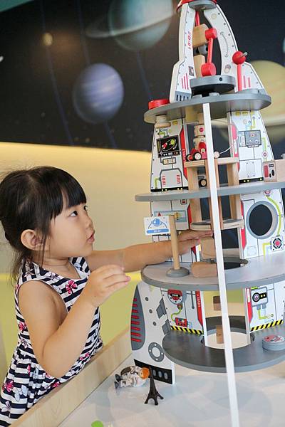後來發現這火箭中間還可以升降的功能,也吸引霓霓跟著玩呢