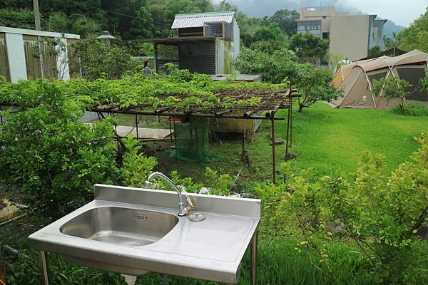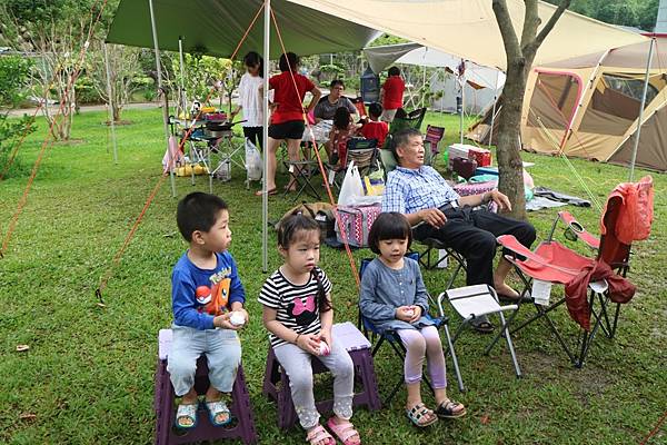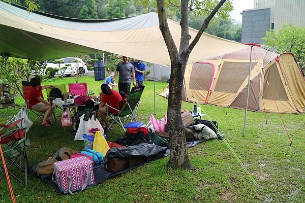 這回和辦公室同事及家人一起出遊,4帳+1通鋪,因此訂位在A區的草地區,但實際造訪後覺得隔壁區營主住宅前的草地營味更為寬廣,而且也有涼亭及木桌椅可以使用,更為方便呢