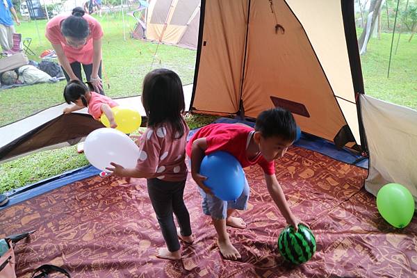 小朋友玩氣球,還真是開心啊!但是我在帳篷裡可是心驚驚,深怕爆破掉,嘿嘿