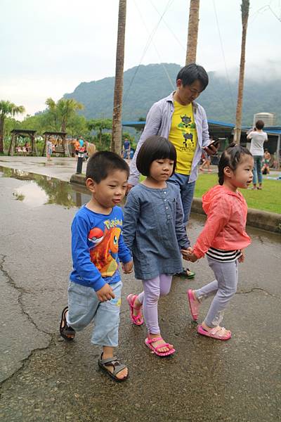 沙坑旁還有養殖鵝的水池,小孩看的很好奇呢