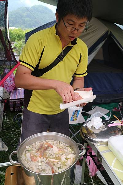 孩子們都洗好澡後,回到帳棚已經看到家人都已經先開動了,鮮甜又美味的晚餐