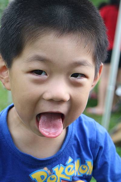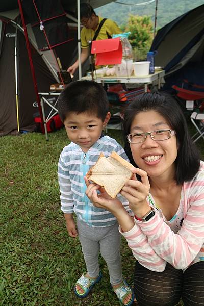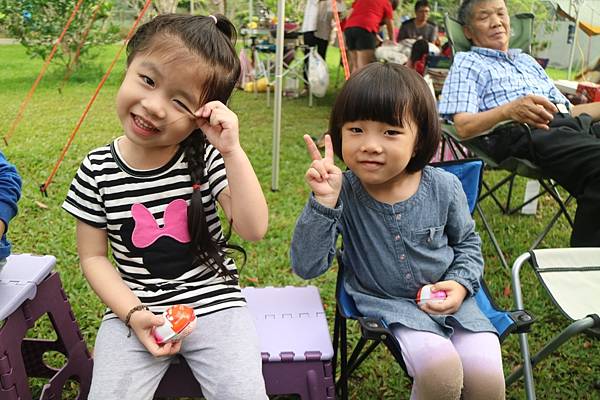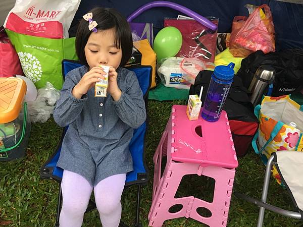 霓霓已經吃完了粽子,可以喝果汁了!露營時總是可以吃到平常在家少吃到的東西,難得解禁,哈哈