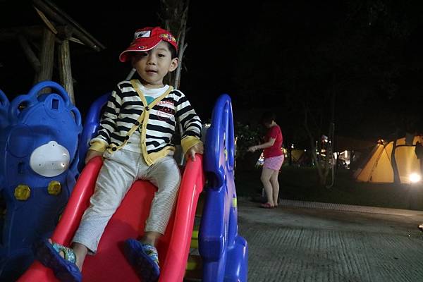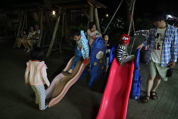 小孩們玩起溜滑梯及搖椅,成為夜間最好玩的良伴