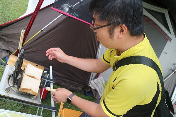 第二天早晨迎接我們的是陽光,剛好可以曬帳,讓我們收帳時可以乾帳回家,此時大弟也在開始準備早餐了