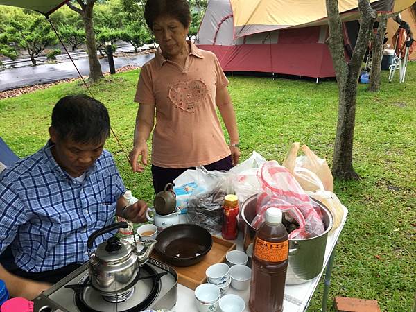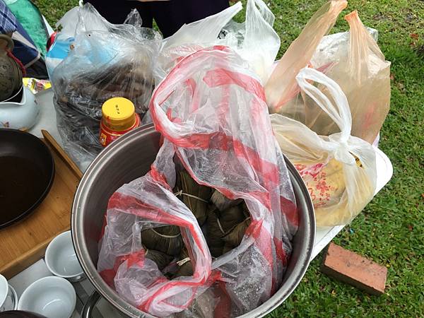 愛喝茶的阿公,已經開始煮熱水泡茶了,今天的午餐是粽子+仙草,在忙碌過後是很方便進食的食物