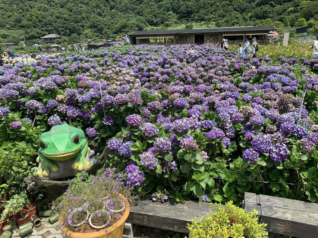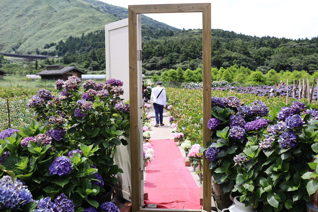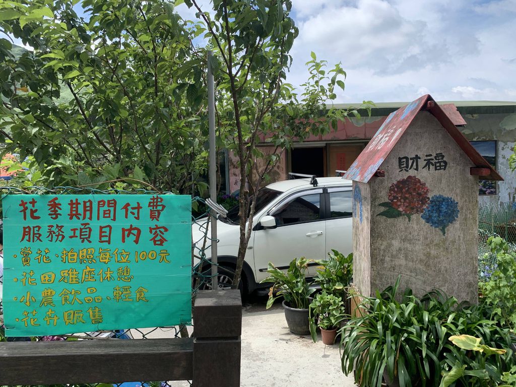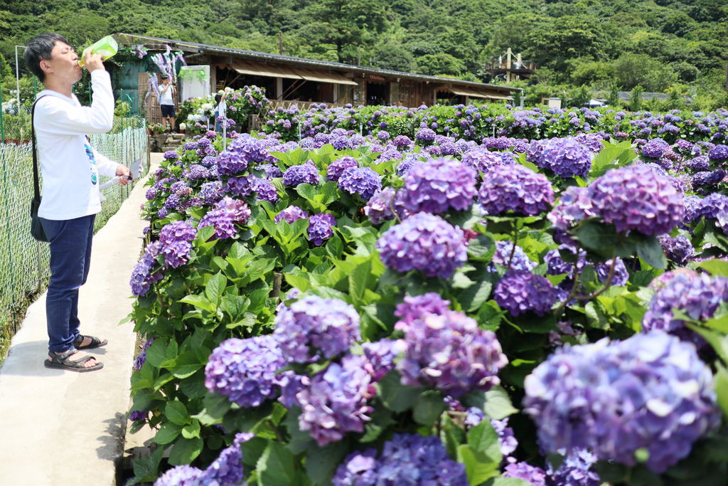 在這裡停留一小時左右,我們也準備要離開了,陽明山的繡球花園每家收費不一,100-150元/每人不等,就看大家喜歡梯田式或是搭配山景的角度,重點是出發前還是要上各家花田的FB觀察一下花況再決定要不要前往喔!