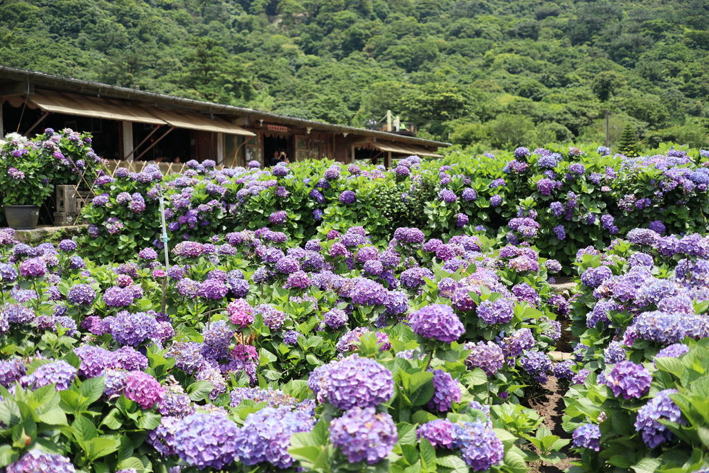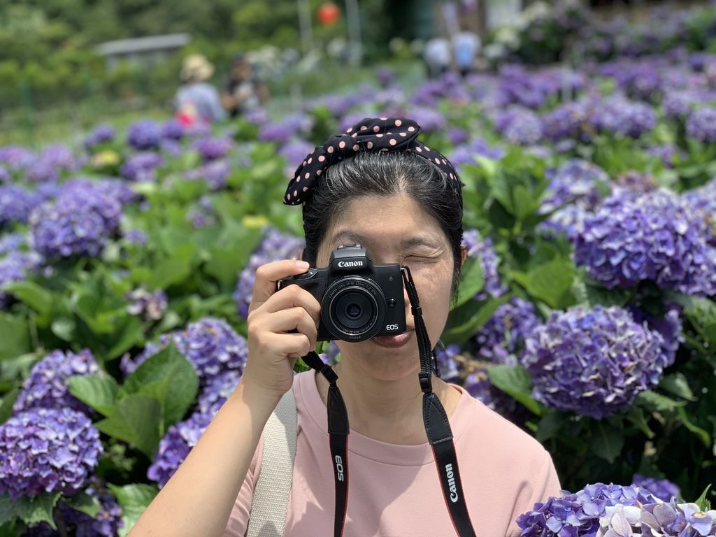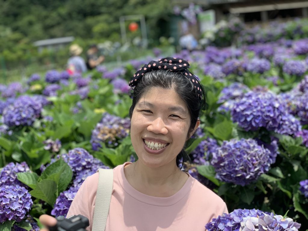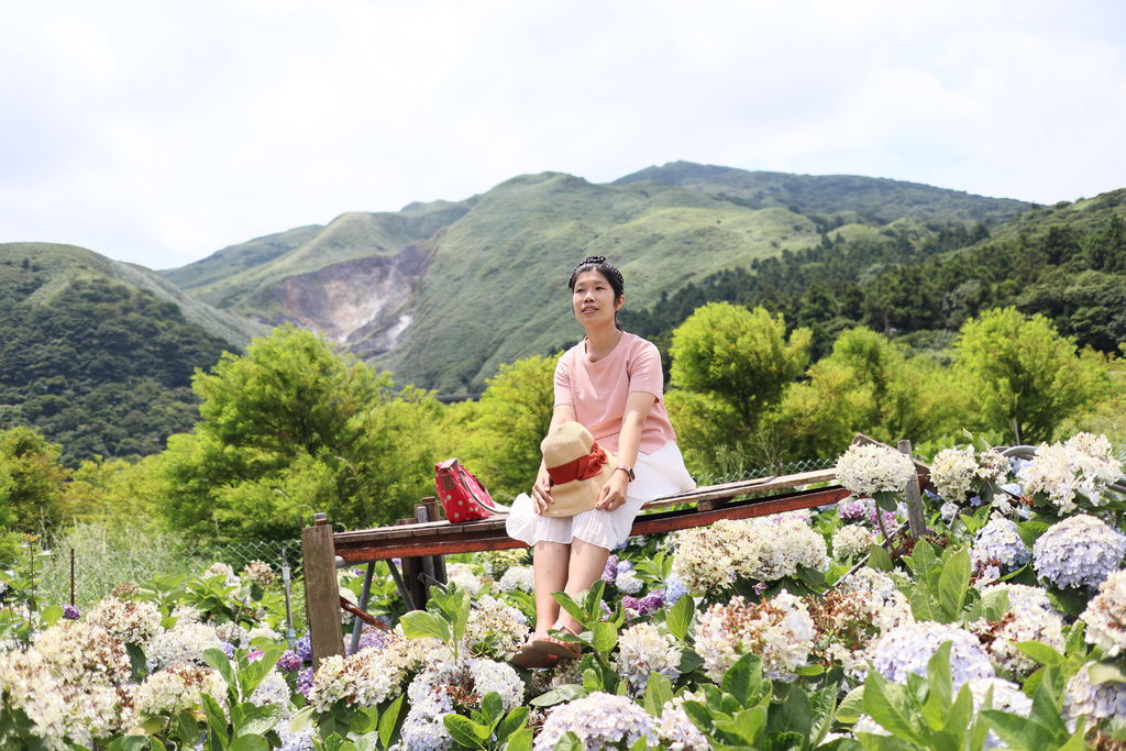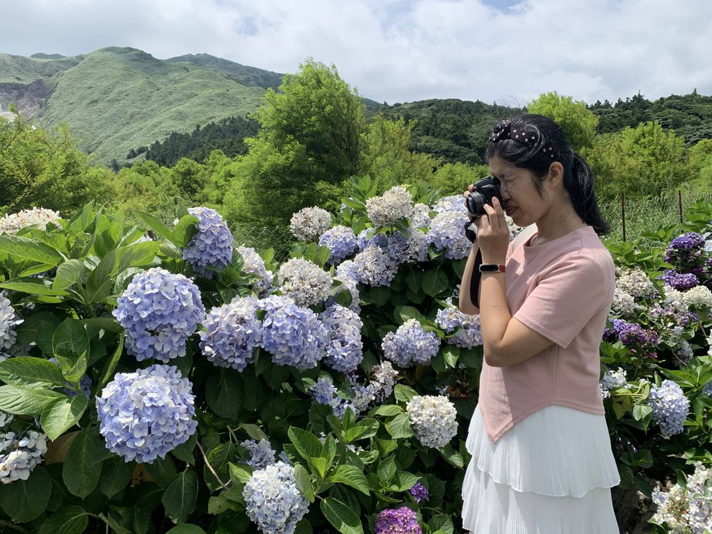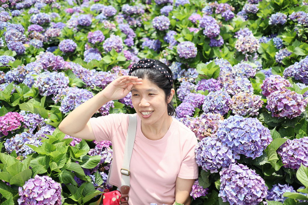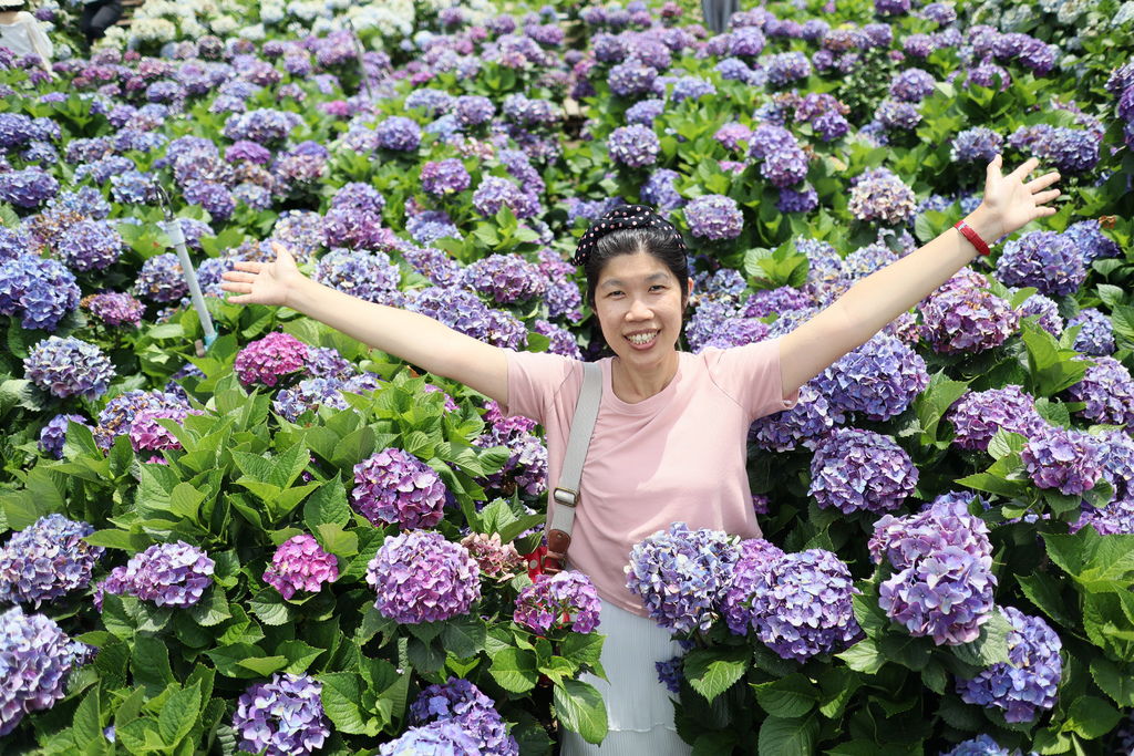 陽明山的繡球花園是可以讓人站在花叢中拍照,因此更能感受到被花海包圍的景致