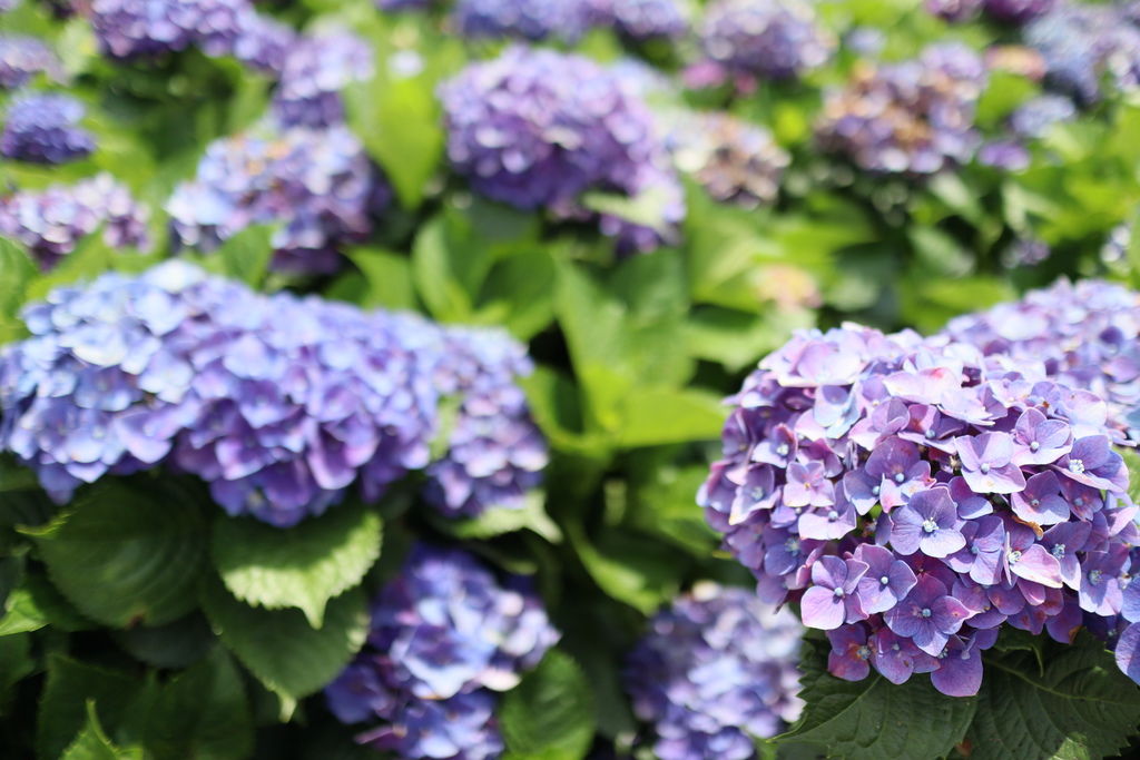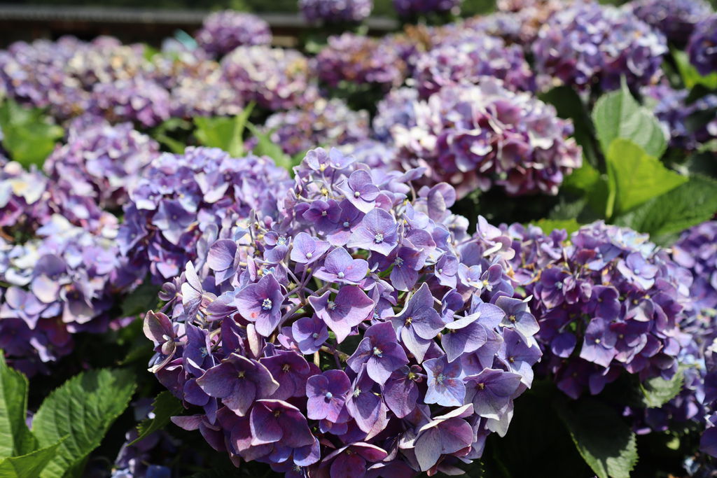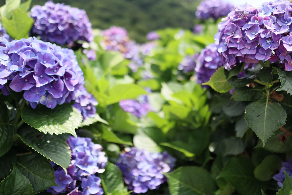 花季雖然到七月初,但是花況已超過盛開期,想拍美美的繡球花,得找找角度才行,身處在紫色浪漫中,好美啊!