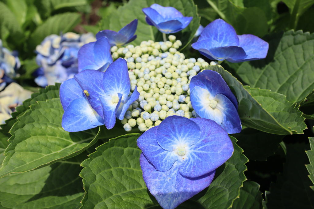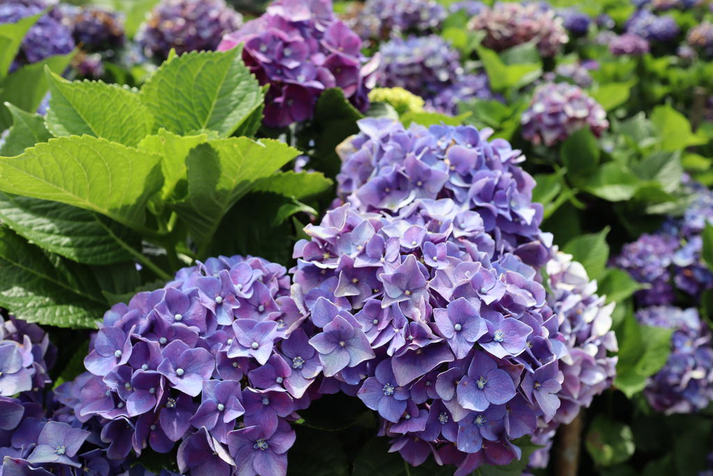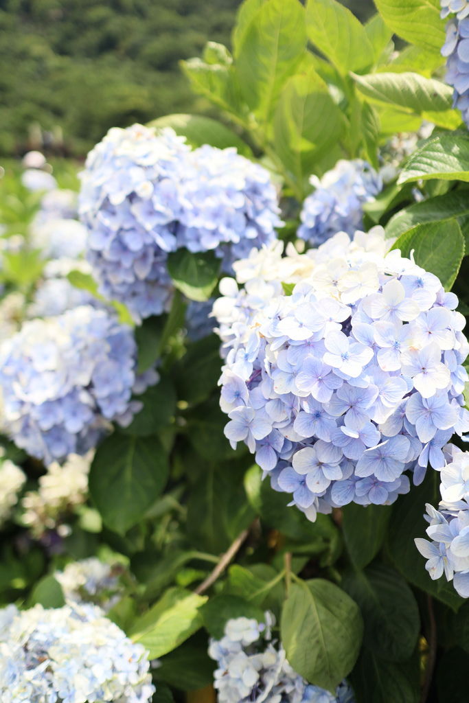 越往花田末端,繡球花況會好些!這時單拍花兒就很美