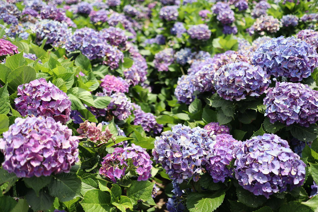 繡球花的花色多變化,從白色、粉色、淺紫、深紫、藍色花瓣都有,讓人不禁陶醉在其中