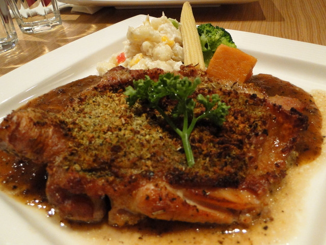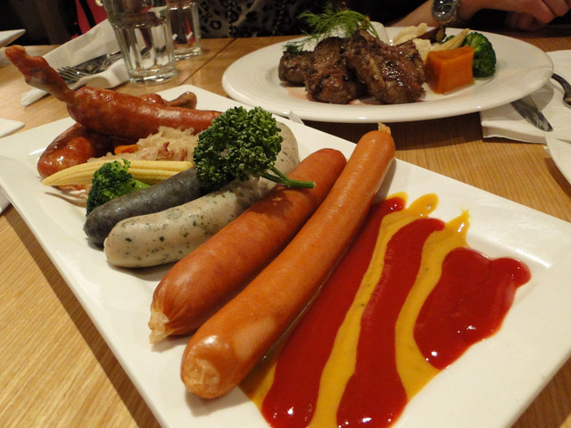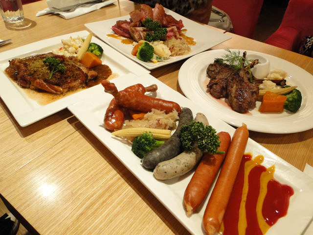 我們點了羊小排、豬腳、烤雞腿、德國香腸,哇!一桌子的大餐看起來好豐盛喔!