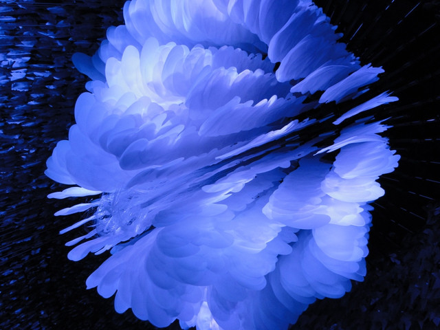 夢想館裡沒有真花,全都是科技花,一路讓你感受到科技帶來的新奇,入場後,先觀賞的是夢想之花的表演,這朵寬達六米的巨型機械花,一層一層綻放,從清晨到夜晚,隨著一整天不同的時間氣候,就有不同的光影變化。