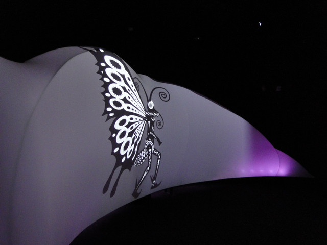 走在感應地板上,背板上的影子就從人型變成蝴蝶蛹~吸收能量後,準備化身成昆蟲,穿梭在花瓣迷宮和雄蕊通道中。