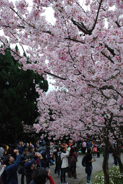 看看大家昂首拍照的模樣,就知道這區的櫻花林是多麼吸引人了吧~