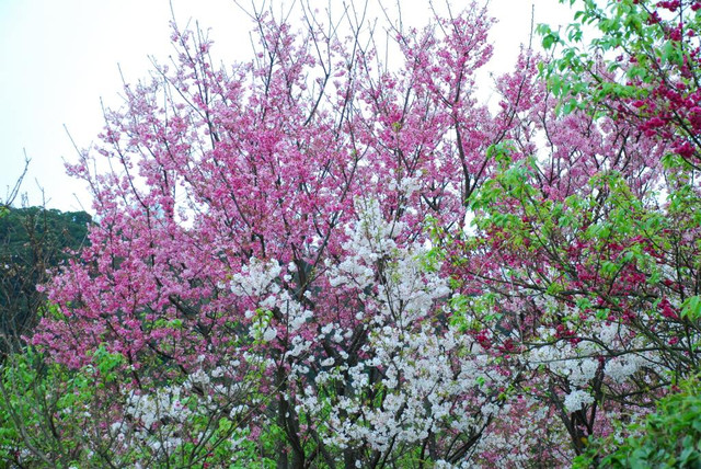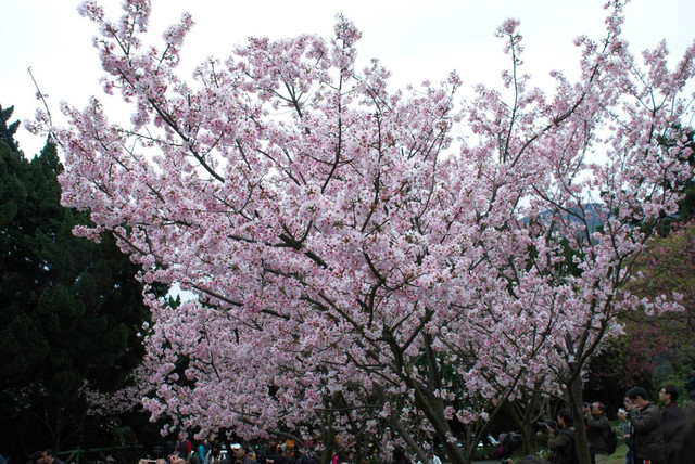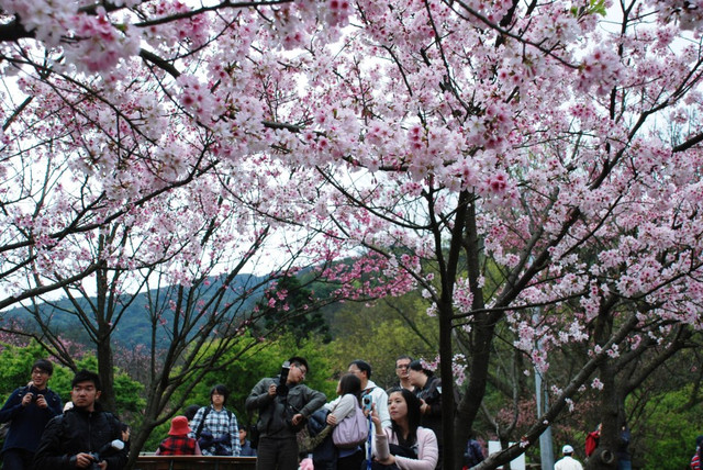 我們先在第二停車場下車,往花鐘方向走去,每條小徑種滿了櫻花樹,雖然花期不一,但是看到聚集最多遊客的地方,往這邊走去就對了,這幾株簡直是吉野櫻花王嘛!盛開的模樣讓我不禁想到天元宮、阿里山的吉野櫻,也是大家爭相到訪賞櫻之地...