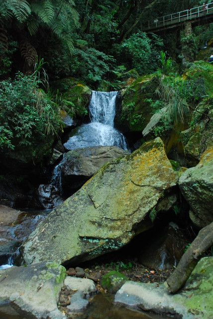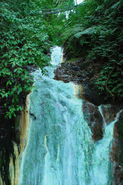賞花之餘,也是要來健走一下,這邊的瀑布應該也有硫磺的成份吧,地質呈現不同的顏色~