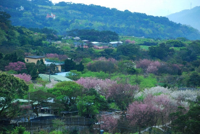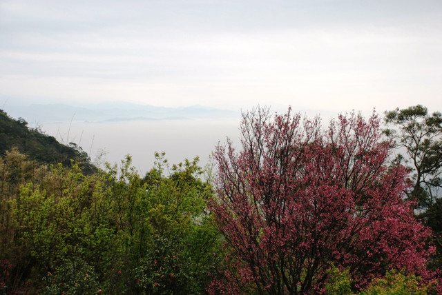 走到高處時,陽明山又是呈現不一樣的風情,雲霧繚繞著,以及繁櫻點點的散布在陽明山頭~