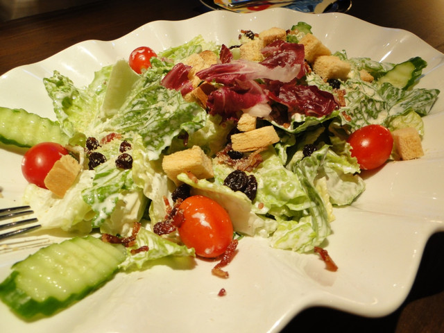 凱薩沙拉,這麼大盤看起來像是四人份的...都是美式料理也要點蔬菜來中合一下囉...