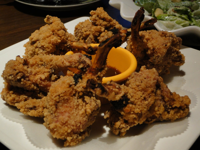 後來,林桑的加入,我們又再加點了下酒菜,酥炸薯條及烤軟骨雞腿串