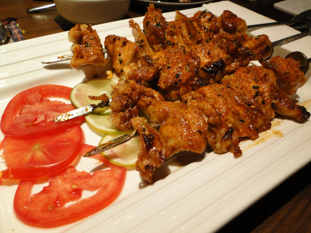 這道像是地雷菜,加了七味粉的烤軟骨雞腿串,味道不是很優...