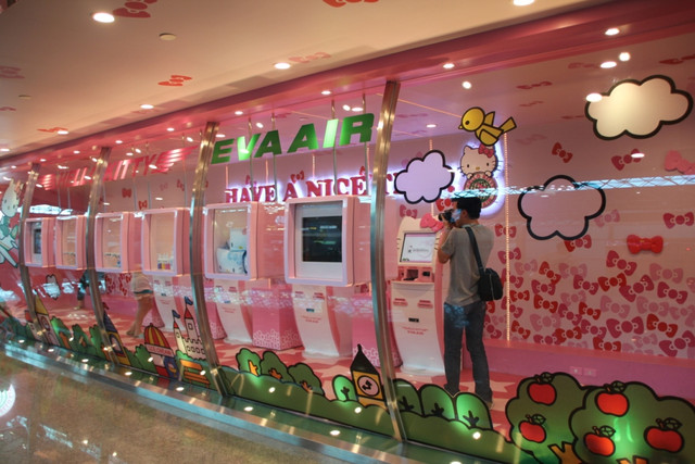 接下來在長榮櫃檯附近發現有hello kitty的拍照景點就在這裡努力的拍照
