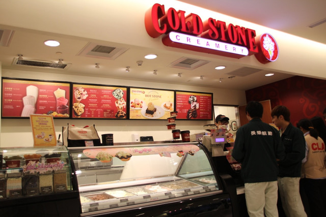 吃完後,這時不禁覺得Tad愛搓手機也沒啥不好,因為他發現只要下載cold stone app就可以到門市兌換小份的冰淇淋,剛好這裡就有cold stone啊!