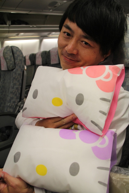 至於機艙內呢!抱枕、餐具、廁所用品也是kitty的!