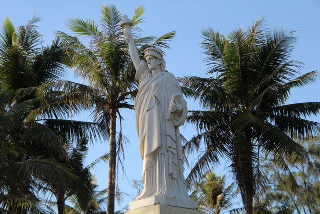 自由女神像真的一點也不高,而且這是第三代了!(因為之前屢被颱風摧毀啦!)