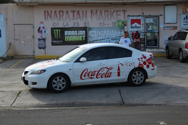 Cola彩繪車主發現我們在拍他,還一直對我比出"六"的手勢,跟我們示好打招呼,當地人還真熱情呢!車後方站的就是我們在當地的導遊啦!