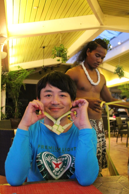 有猛男走到我面前,剛開始不知道他說甚麼,原來是要編織紀念品給我們啦!