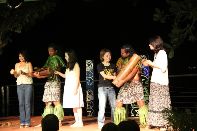 今晚在Hilton hotel享用的晚宴餐,是我們在關島這幾天以來,吃到最好吃的料理了,加上看秀,讓我們更認識當地的傳統舞蹈~