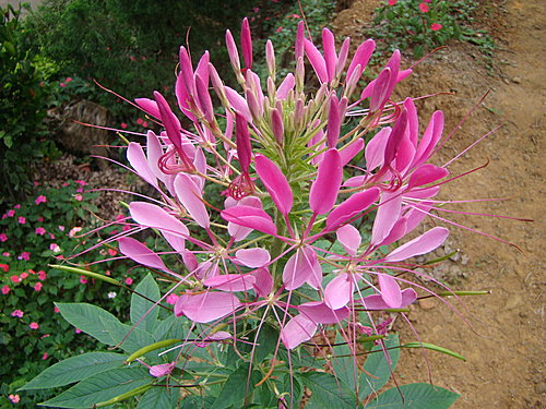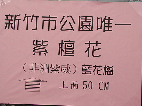 就在努力拍花的同時,有路人經過問這是什麼花?我和老爸都很異口同聲的回答~非洲紫葳,看到新增加的告示說明,更自豪它出現在這裡.......