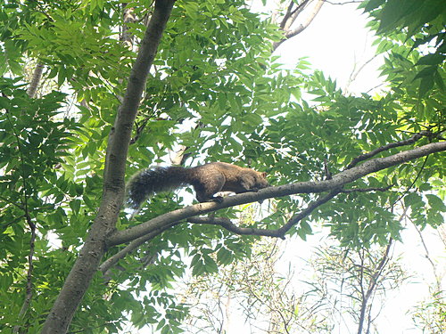 還好,讓我發現了松鼠,而且不只一隻,而且好心的叔叔、阿姨們,還跟我指引牠們的位置,因為動作太快了!一溜煙就不見了!
