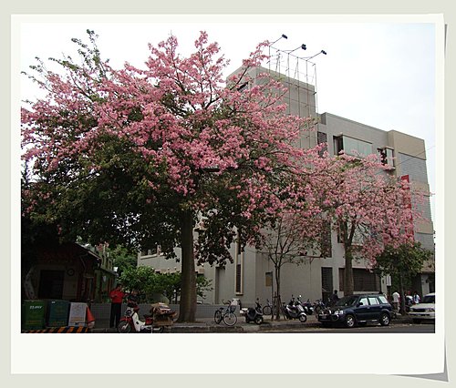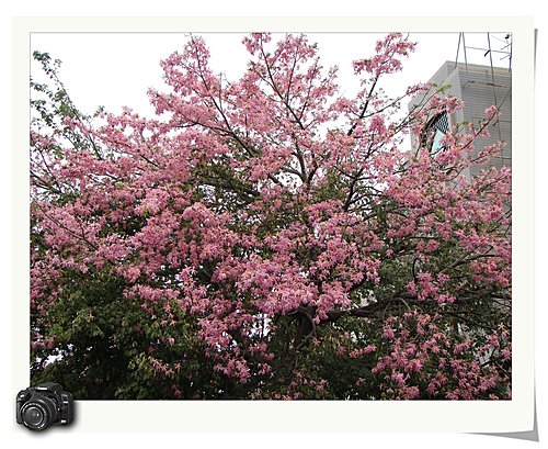 沿途中的美景,大樹彷彿漆上了粉色的油墨,讓人不禁停下腳步,佇足一眼~