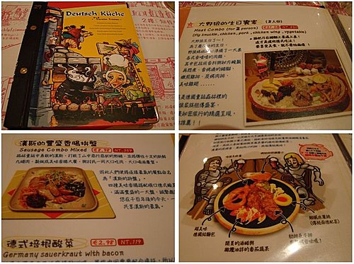 果真,這家的menu依舊是厚厚的一本"書"啊!想留點肚子給台中美術館對面的餐廳吃下午茶,因此只點了"碳烤章魚腳"以及"秘密旅行飛機餐"