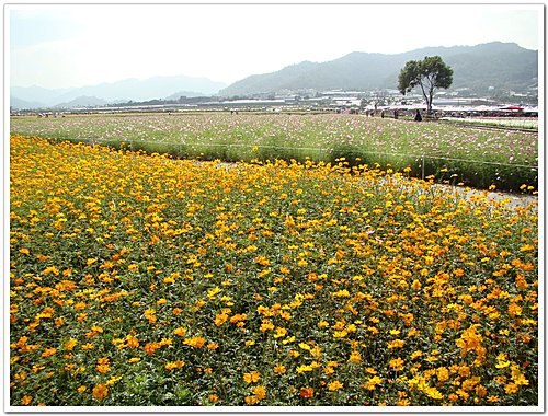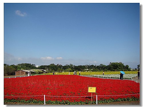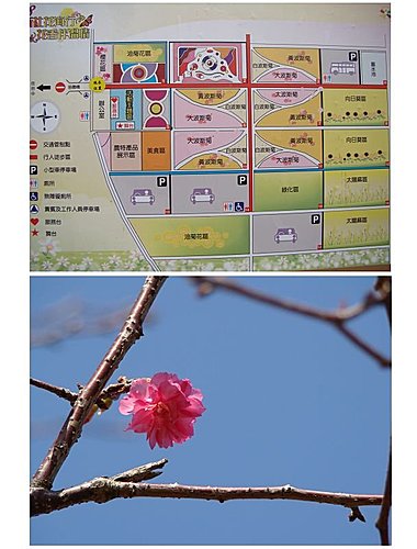 有別於去年尾聲才抵達於此,花都快凋謝了,只好遠觀之;今年在花海一開幕時就來到,果真繽紛許多。而櫻花的提早綻放,似乎也想跟這片花海爭個高下........