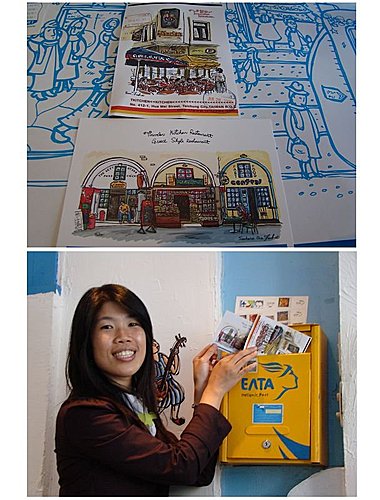 昨天在"德國秘密旅行"寫好的名片,怡婷想說自己找郵筒寄好了,結果發現沒有郵票要怎麼寄?於是連同昨天的明信片一起在"希臘秘密旅行"寄出囉!