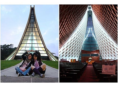 台中旅程最後一站-東海大學,有別於之前酷熱的天氣,下午已經逐漸轉涼,冒著寒風,騎了好久來到東海大學,就為了看這的"路思義教堂"