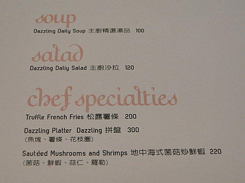 比怡亨酒店還難預約的餐廳,我想非"Dazzling cafe"莫屬了吧!客滿也就罷了,重點是"電話超級難打",不是忙線中就是沒人接,好不容易接通了,不同的服務人員回答著不同客滿的日期,再打過去時,又是跟電話那頭嘟嘟聲作伴,真是無奈啊!差點杏玫都要直接殺到店裡去預約時間哩!生意好到應該要再應徵個"接線生"囉!嘻嘻~