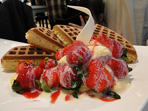 草莓鬆餅,份量比米朗琪的厚、多,但是鬆餅粉缺少了蛋香味,不過外皮酥脆,內餡鬆軟,口感不錯!