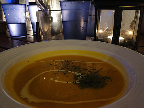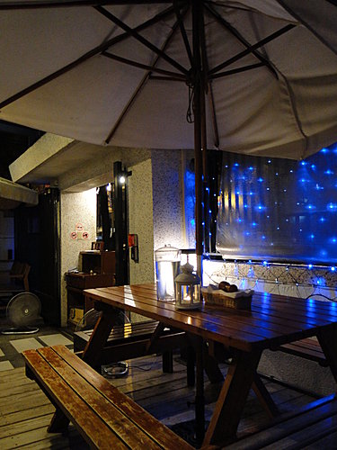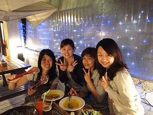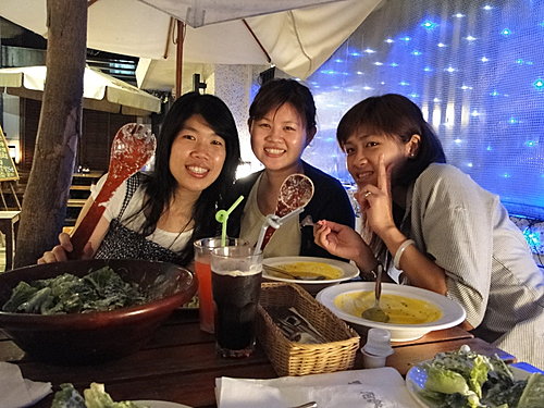 夜間在戶外區用餐真的是一件痛苦的事,menu上的字需要調整位置、光線才能看得清楚,加上只有我吃過這家,因此就要努力的解釋哪些餐點可以選擇,我想其他桌的客人一定會覺得我們很吵吧!連子婷自己都覺得我們這桌好像是來亂的喔~哈哈~